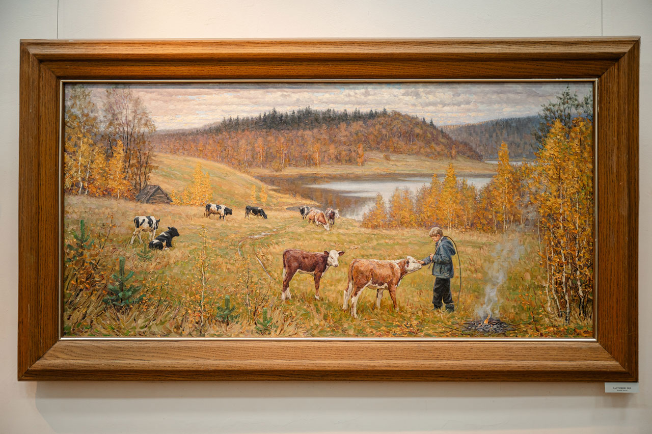 «Природа, которая окружает «Академическую дачу» располагает к работе на пленэре. Каждый новый год – новые впечатления. Вдохновляет мимолётная изменчивость состояния пейзажа в разные времена года. Передать привычное каждый раз по- новому, не механически списывать что видишь, а помнить о первом впечатлении. И, конечно, не устраивать эффекты и фокусы на холсте. Это – не совет, а просто личное моё убеждение…» – Борис Петренко
