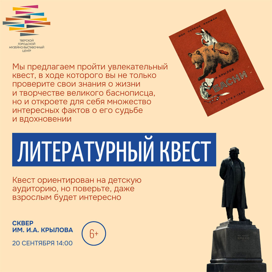 Тверской городской музейно-выставочный центр приглашает на увлекательную интерактивную программу, посвященную жизни и творчеству знаменитого баснописца Ивана Андреевича Крылова, чьи детские годы прошли в городе Тверь!